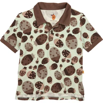 Kids' Ladybug Print Organic Cotton Polo In Brown/beige/green
