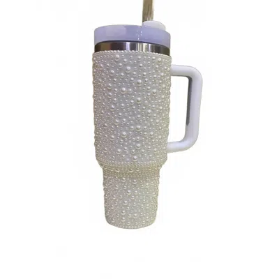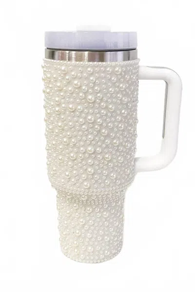 Women's Pearl Studded Stainless Steel Tumbler With Handle - 40 oz In White