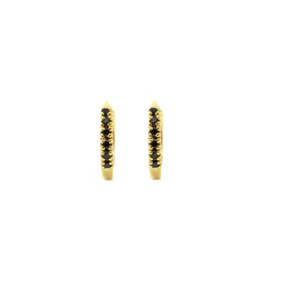 Women's Black Adaya Huggie Hoops- Onyx, Gold