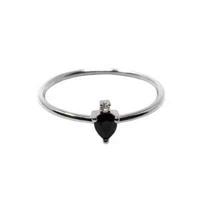 Women's Black Pear Atarah Ring- Onyx & White Topaz, Silver