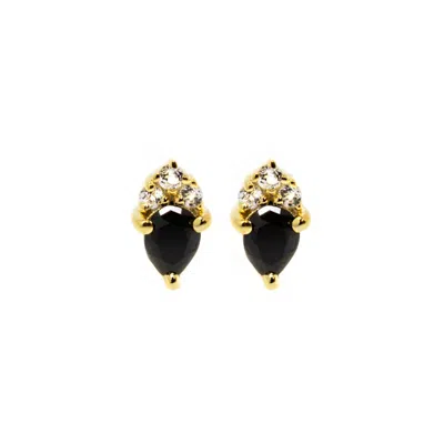 Women's Black / White Pear Atarah Studs- Onyx & White Topaz- Gold In Multi
