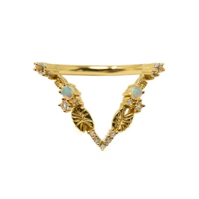 Women's Gold / White Lilypad Ring- Opal & White Topaz- Gold