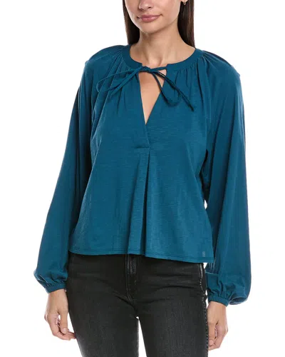 Cambria Gathered Long Sleeve Top In Jet Black In Blue