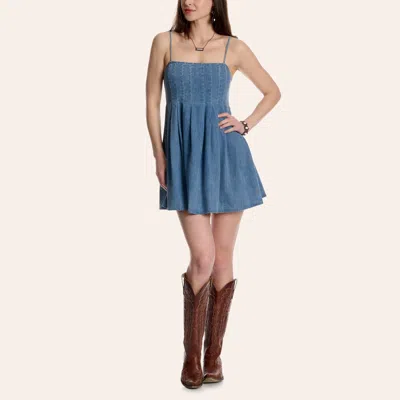 Women's Medium Wash Denim Pleated Mini Dress In Blue