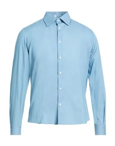 Man Denim Shirt Azure Size Xl Cotton In Blue