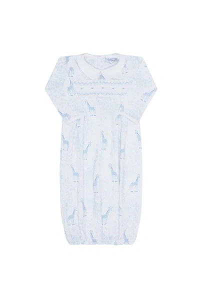 Babies' Blue Giraffe Print Smocked Gown
