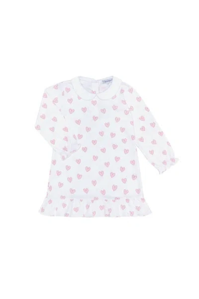 Kids' Pink Heart Print Ruffle Dress In White