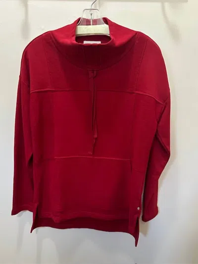 Women's Effortless Top With Kangaroo Pocket In Crimson In Red