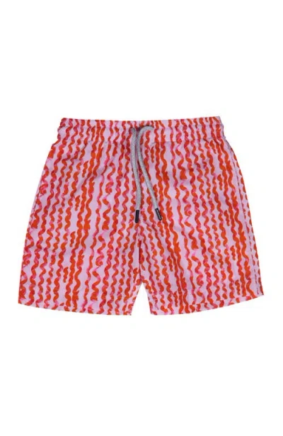 Kids' Wavy Stripes Yellow-red Quick-dry Swim Trunks In Orange