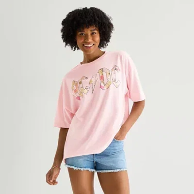 Floral Acdc Oversized Tee Womens Juniors Crew Neck Short Sleeve Oversized Ac/dc Graphic T-shirt In Pink