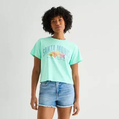 Santa Monica Baby Tee Womens Juniors Crew Neck Short Sleeve Classic Fit Graphic T-shirt In Green