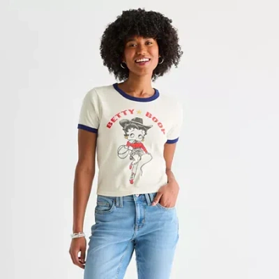 Womens Juniors Crew Neck Short Sleeve Betty Boop Graphic T-shirt In White