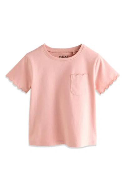 Kids' Scalloped Cotton Pocket T-shirt In Pink