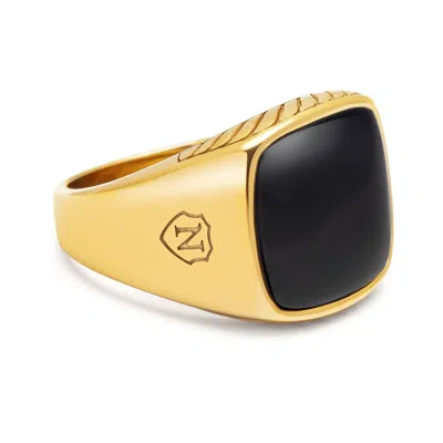 Gold Onyx Signet Ring In Black