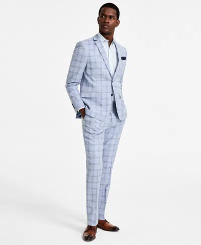 Men's Slim-fit Stretch Suit In Light Blue Plaid