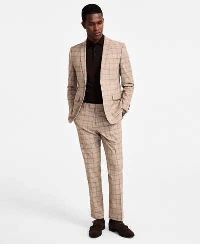 Men's Slim-fit Stretch Suit In Tan Windowpane