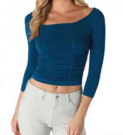 Shirred Boast Neck Top In Blue Opal