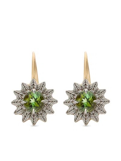 18kt Yellow Gold Flower Tourmaline Earrings