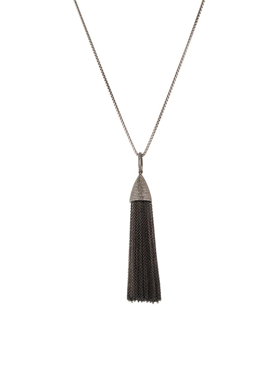 Women's Rhodium-plated Silver & Champagne Diamond Tassel Pendant Necklace