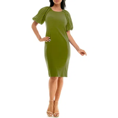 Pleat Puff Sleeve Midi Dress In Green