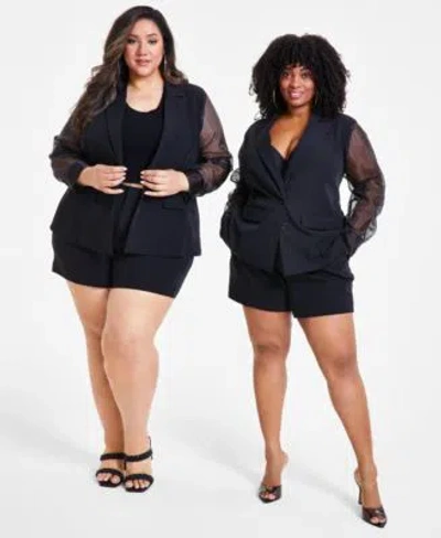 Trendy Plus Size Organza Sleeve Blazer Tank Top Shorts In Black Beau