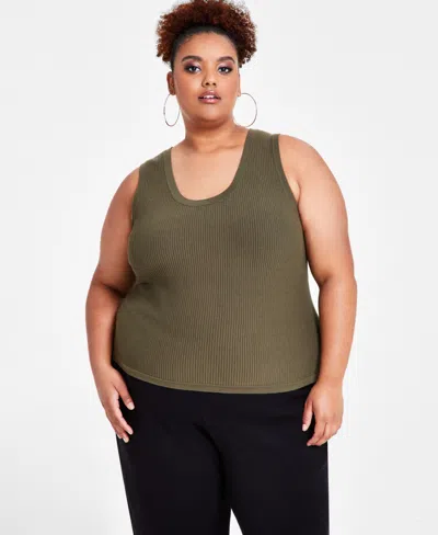 Trendy Plus Size Ribbed Sweater Tank Top In Winter Oat