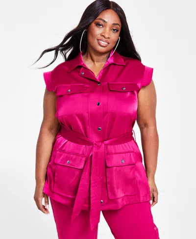Trendy Plus Size Tie-waist Utility Vest In Sangria