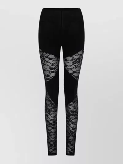 Patchwork Leggings Lace Panels Sheer Waistband In Black