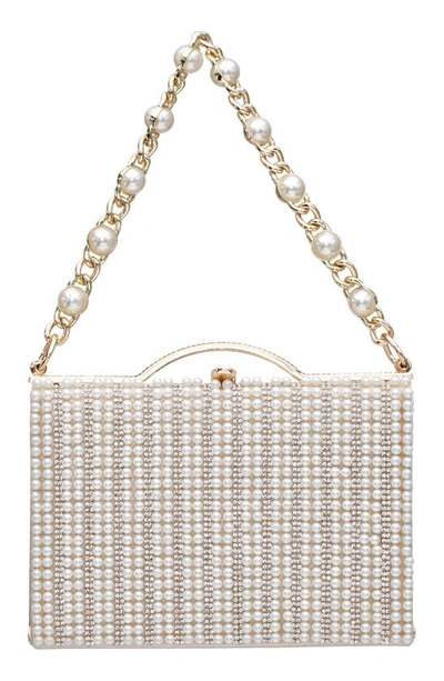 Imitation Pearl And Crystal Minaudiere Clutch In White