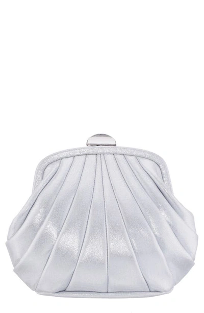 Concord Pleated Satin Frame Clutch In New Silver