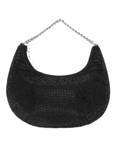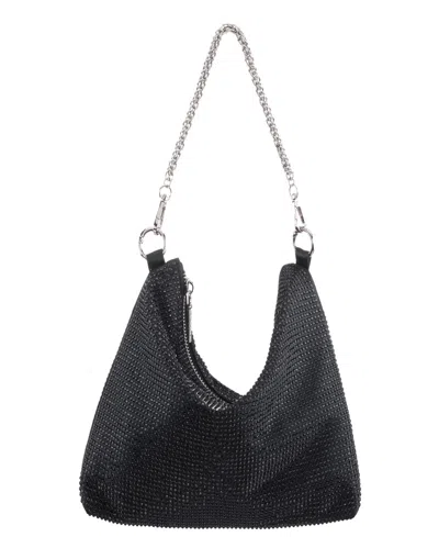 Crystal Embellished Zipper Hobo Bag In Black