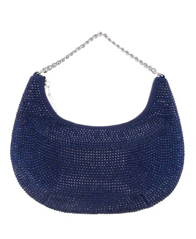 Crystal Embellished Zipper Hobo Bag In Blue