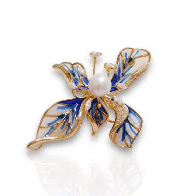 Women's Blue / White Baroque Pearl Enamel Butterfly Earrings