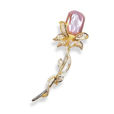 Women's Gold / Pink / Purple Rosebud Bloom Brooch - Golden In Multi