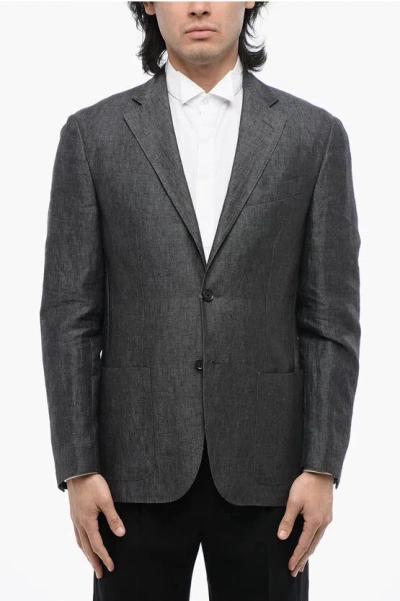 Linen Blend Blazer With Flap Pockets In Gray