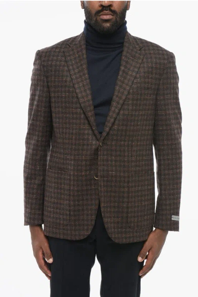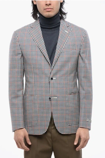 Checkered Motif Wool Single Breasted Blazer In Multi