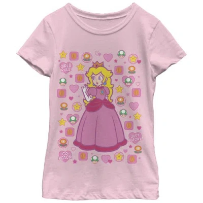 Kids' Girl's Princess Peach Girls Rule Graphic T-shirt In Pink
