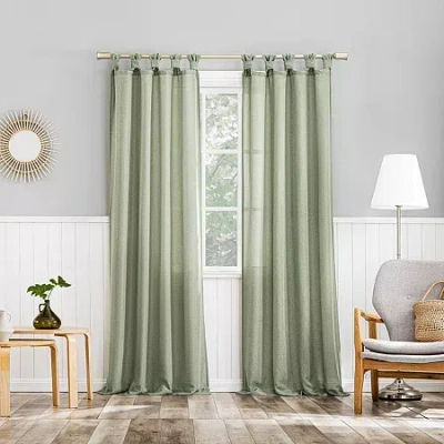 Krista Tab Top Sheer Single Curtain Panel In Green