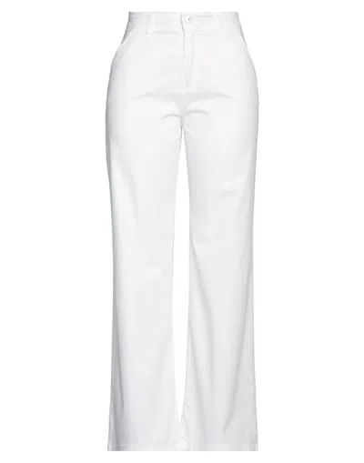Woman Jeans Ivory Size 32 Cotton, Elastane In White