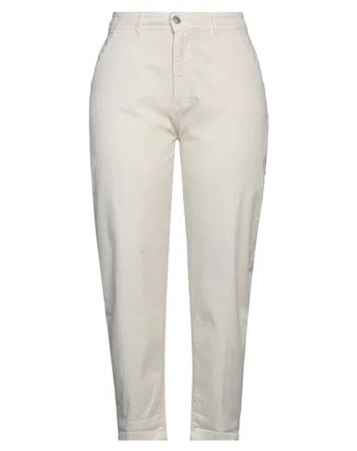 Woman Pants Ivory Size 28 Cotton, Elastane In White
