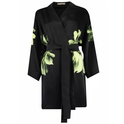 Men's Silk Dreamscape Short Kimono Robe Black Flower