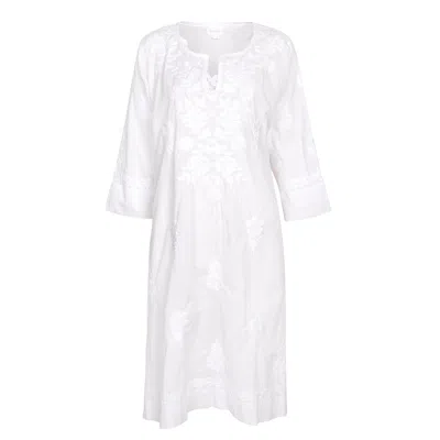 Women's White Harriet Dress With White Hand Embroidery