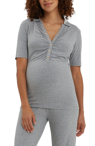 Calista Ribbed Nursing Top In Heather Gray