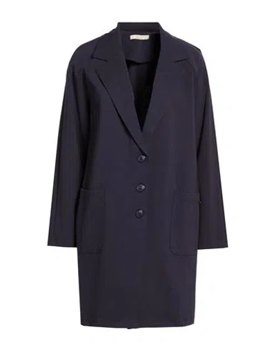 Woman Overcoat & Trench Coat Navy Size L Cotton, Polyamide, Elastane In Blue