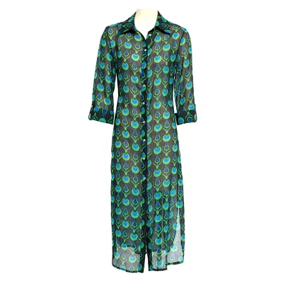 Women's Linda Long Shirt Dress With Tulip Design In Black