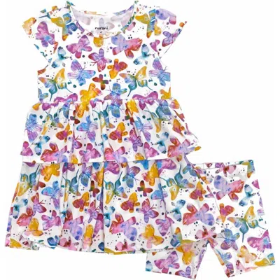 Kids Organic Layered Dress With Matching Biker Shorts In Butterflies