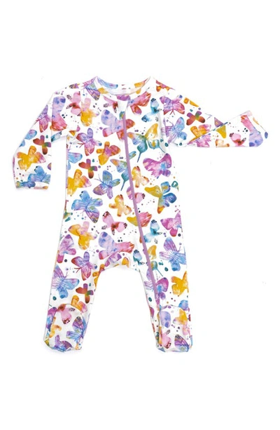 Babies' Butterfly Print Organic Cotton Footie In White/ Purple