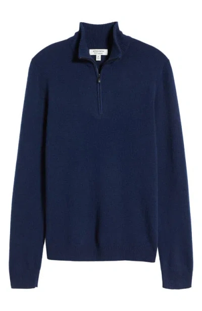 Cashmere Quarter Zip Pullover Sweater In Navy Midnight