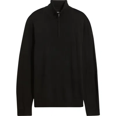 Washable Merino Wool Quarter Zip Sweater In Black