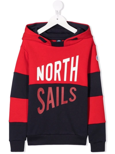 Kids' Logo-print Colour-block Hoodie In Red